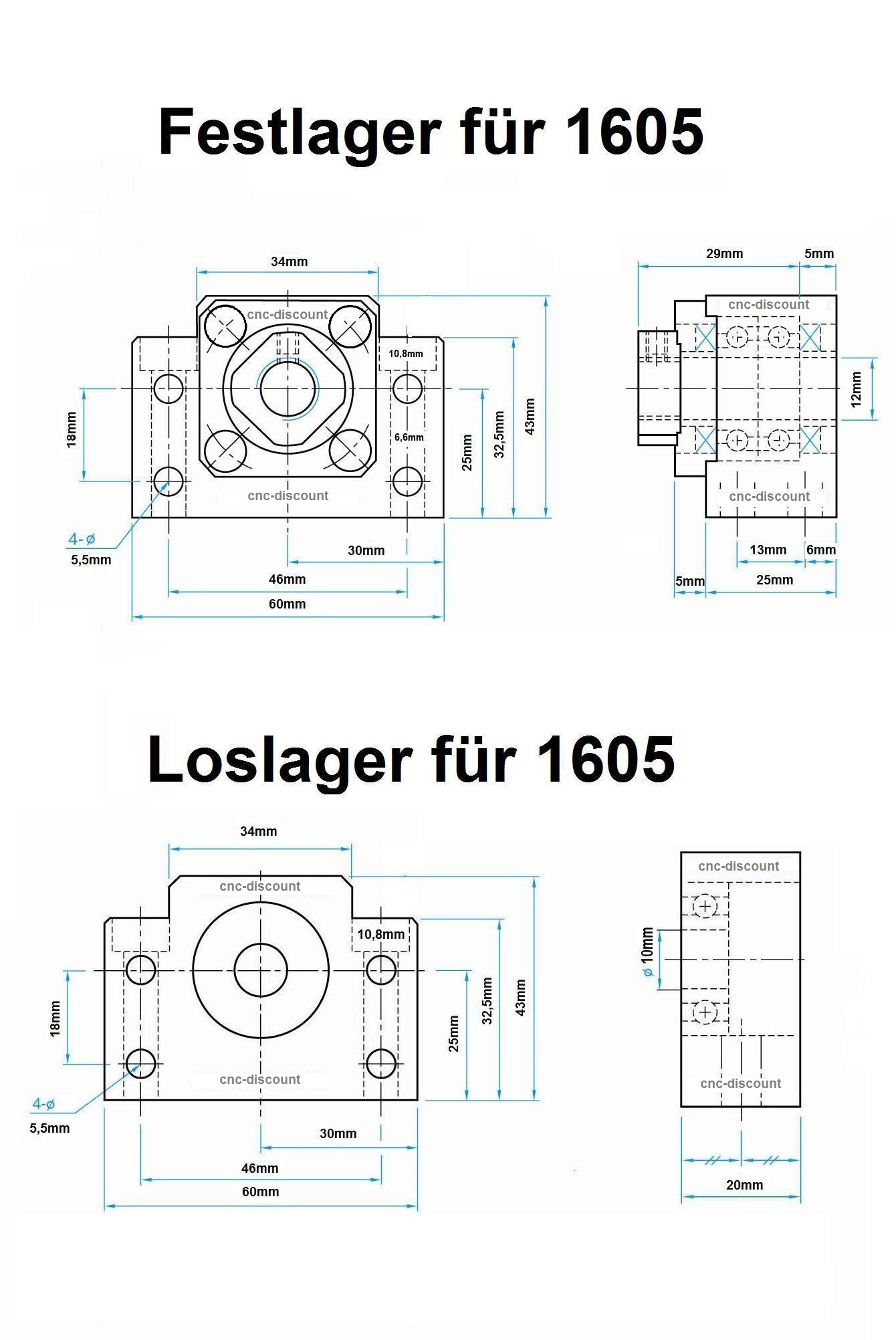 Kugelumlaufspindel 1605 x 550mm komplett Festlager Loslager Spindel CNC Fräse 3D