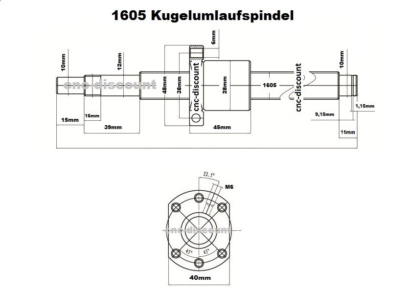 - 1x Kugelumlaufspindelmutter 1605 / inkl. Schmiernippel